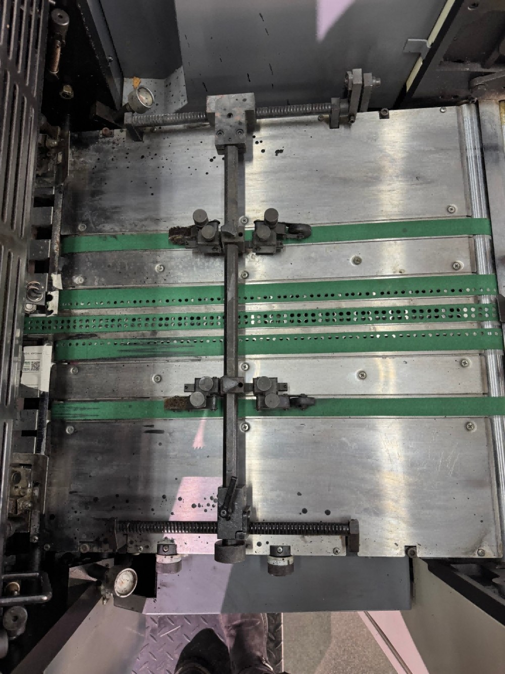 Mit den Zweifarben-Druckeinheiten können Benutzer zwei Farben in einem einzigen Durchgang drucken. Zu den Papiertransportteilen gehören ein Papiereinzugskopf, ein Vakuumsaugtisch, eine vordere Führung und Papiergreifer. Sie ermöglichen es der A2-Zweifarben-Offsetdruckmaschine für den kommerziellen Druck, mit vielen Papiersorten zu arbeiten, von dünnem bis zu dickem Papier. Auf dem Vakuumsaugtisch ist eine kontinuierliche Papierzuführung mit drei rotierenden Transportbändern montiert. Dieses System verarbeitet zuverlässig unterschiedliche Papierarten und -stärken. Der schwenkbare Papiereinzug sorgt für eine gleichmäßige und gleichmäßige Papierbewegung, auch beim Drucken mit hoher Geschwindigkeit.