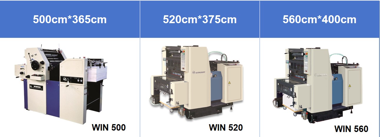 Unsere einfarbigen Offsetdruckmaschinen sind je nach Druckpapiergröße in 3 Hauptmodelle unterteilt: